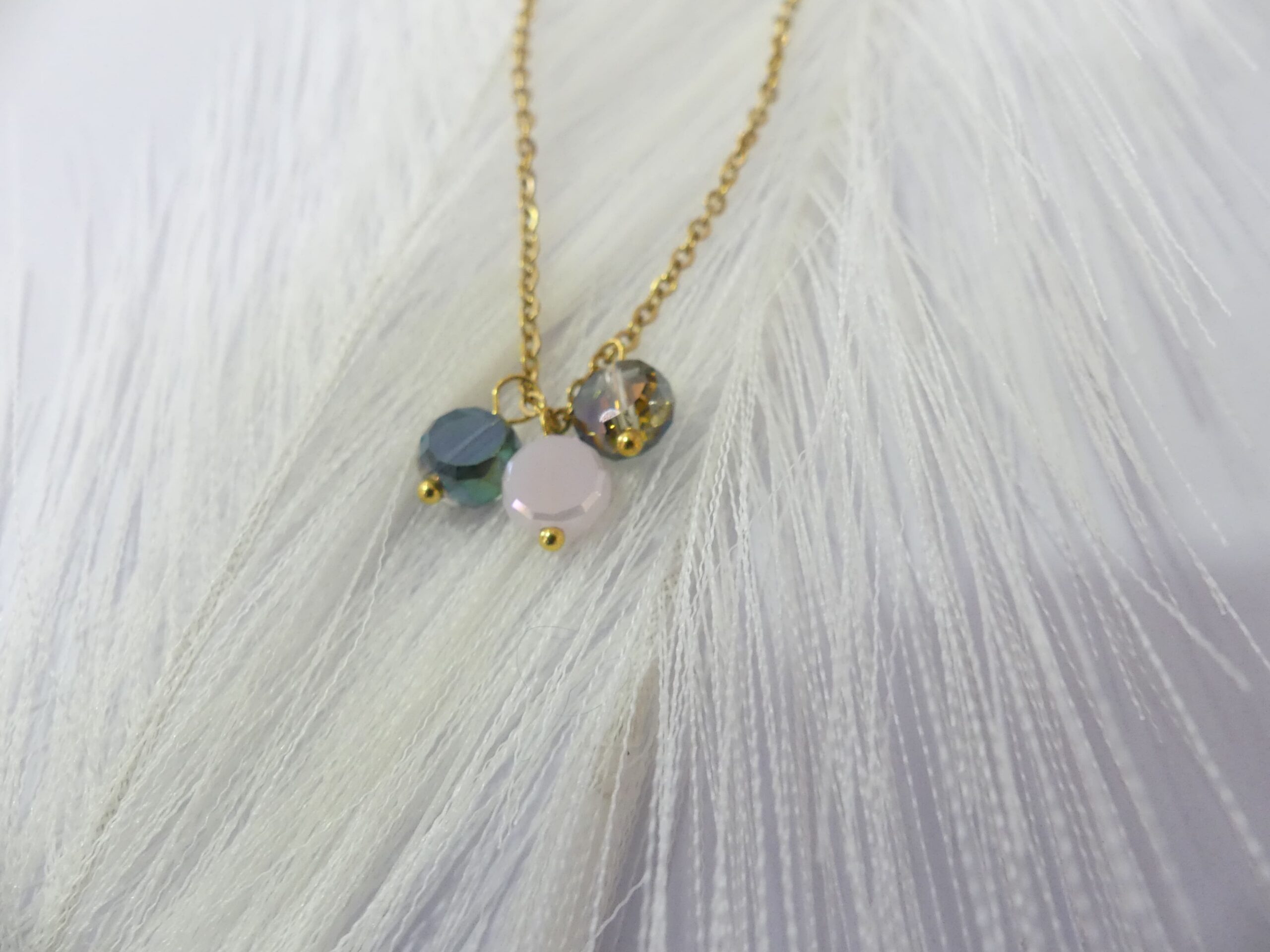 Chaine serpent dorée en acier et 4 pampilles dans un dégradé de bleus en verre