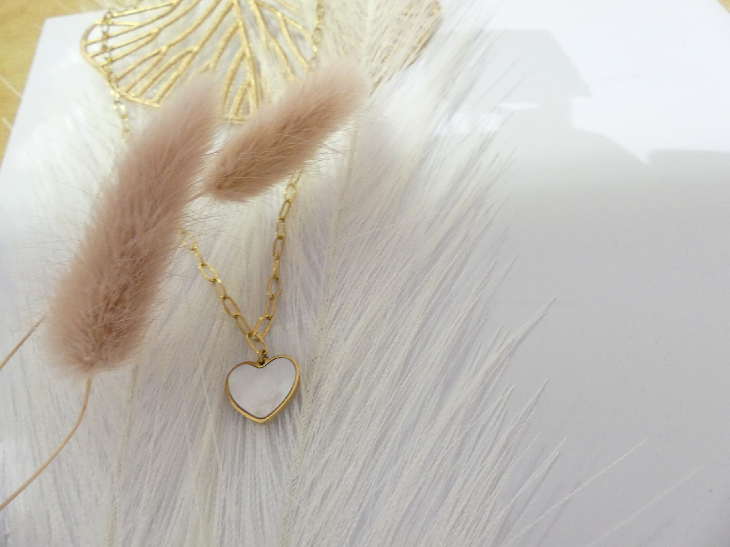 Chaine en acier dorée et " pampilles en verres 1 rose nacrée, une prune et recto vert avec des reflets et une grise verte avec des reflets